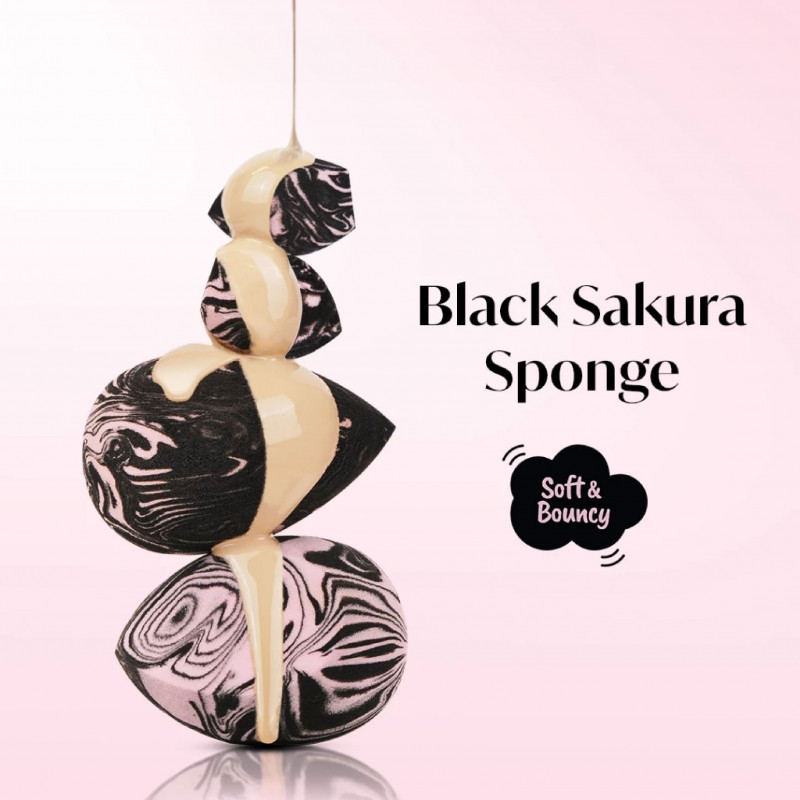 Black Sakura Blending Sponge. This game-changing sponge effortlessly infuse makeup into skin, delivering flawless and seamless finish.