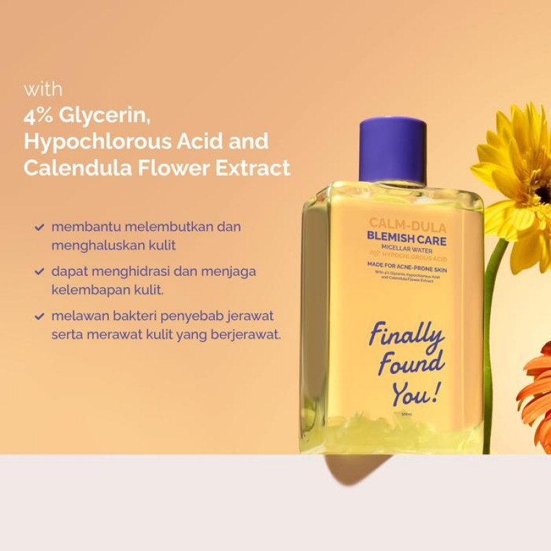 Hypochlorous Acid (HOCL) untuk antibakteri jerawat (200 ppm), Glycerin untuk hidrasi, dan Calendula Extract
