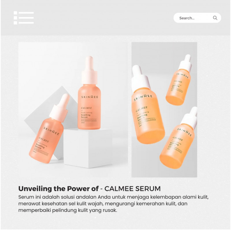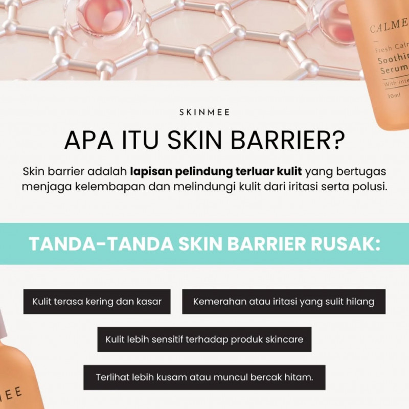 Skinmee Calmee Fresh Calming Soothing Serum dapat digunakan untuk menjaga kelembapan alami kulit, membantu merawat sel kulit wajah, menenangkan kulit kemerahan sekaligus membantu memperbaiki skin barrier yang rusak. Dengan formula intensif seperti Hydrolyzed Hyaluronic Acid, Albatrellus Confluens Extract, Centella Asiatica Extract & Panthenol