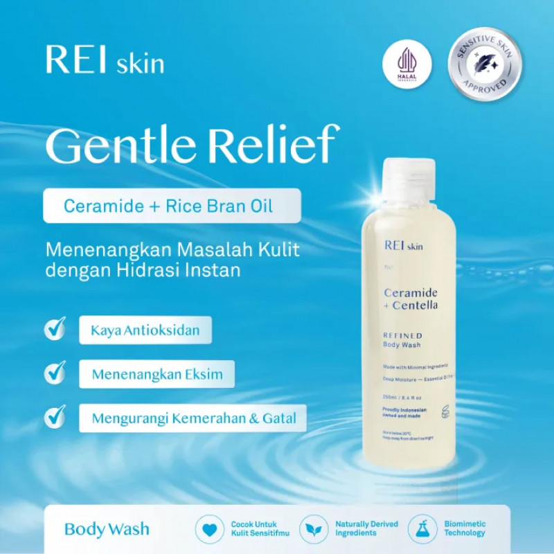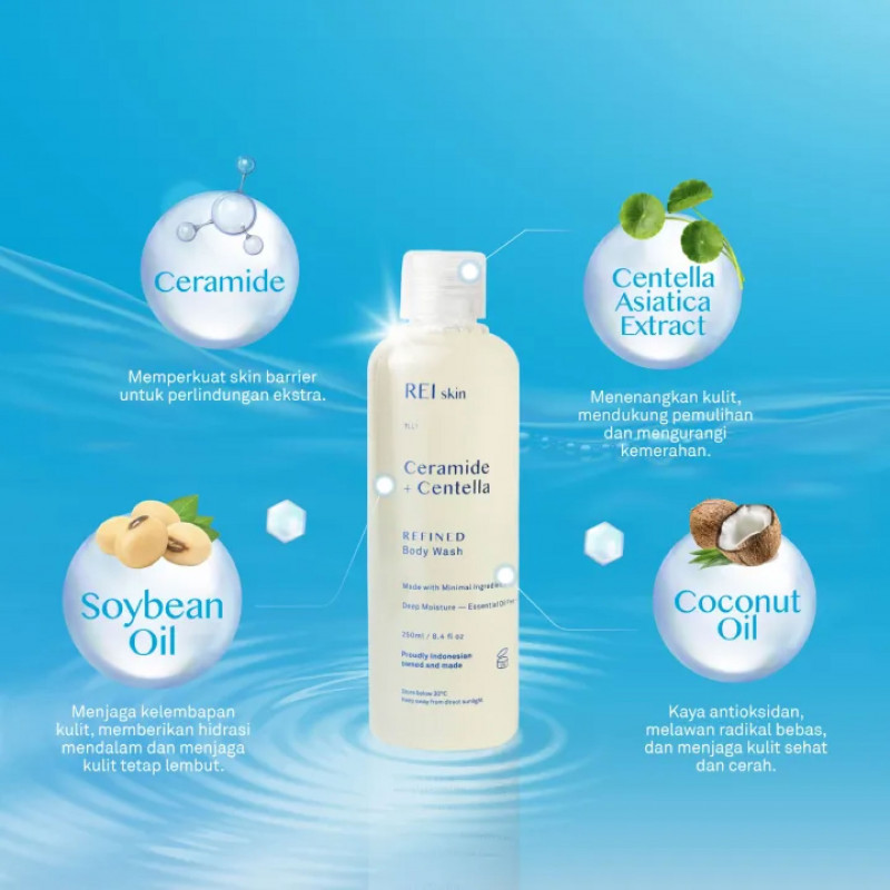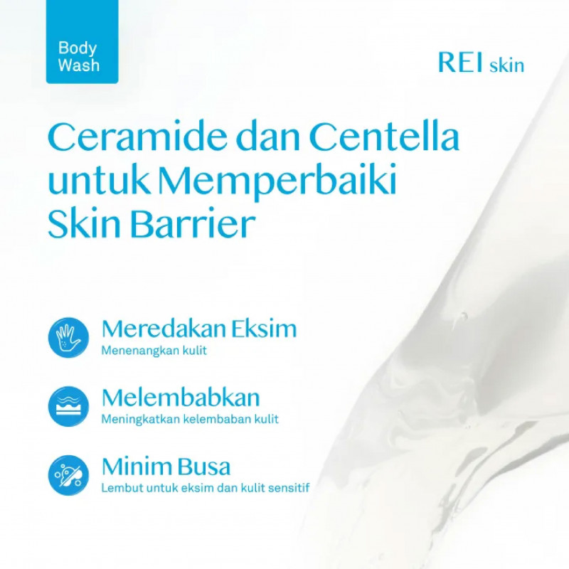 REI Skin Ceramide + Centella Refined Body wash adalah sabun mandi REI yang paling gentle, sabun cair ini mengandung ceramide, centella asiatica, soybean oil, dan squalene untuk membantu melembabkan kulit dengan efektif tanpa menggangu keseimbangan kulit untuk skin barrier yang sehat. Cocok untuk semua jenis kulit.