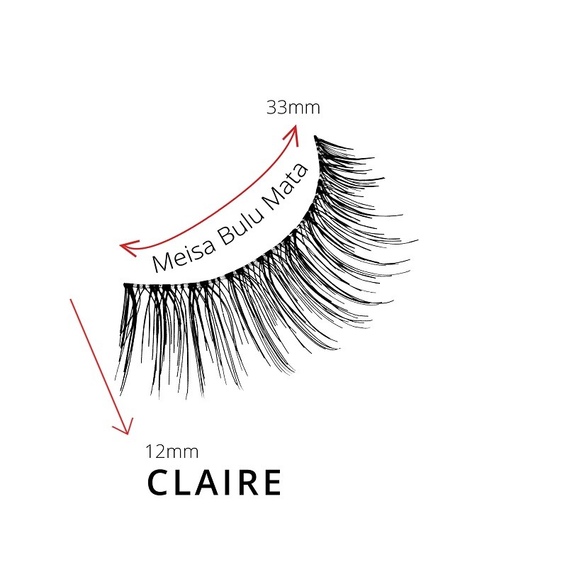 Bubuhkan sedikit perekat (lem bulu mata palsu) pada bagian pangkal bulu mata palsu. Rekatkan bulu mata palsu di atas bulu mata asli. Rekatkan perlahan dari bagian luar ke bagian dalam garis mata. Untuk melepasnya, lepaskan perlahan dari bagian luar ke bagian dalam garis mata.