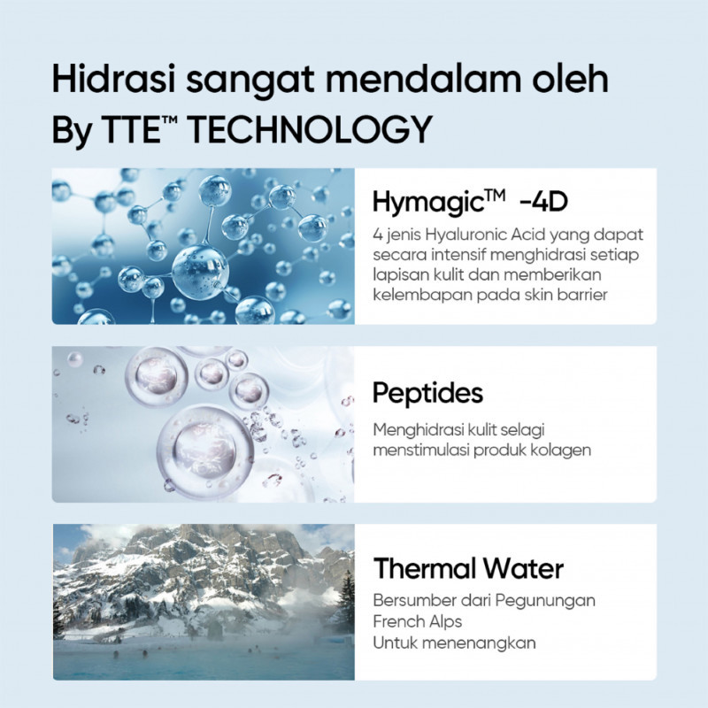 Serum untuk mengatasi permasalahan kulit yang kering, terkelupas karena kondisi kulit yang tidak bisa mengunci kelembaban. Serum ini dipenuhi oleh kandungan tinggi Hyaluronic Acid yang bisa melembabkan kulit secara instan, mengurangi tekstur kulit yang kering. Serum ini juga dapat menghidrasi secara mendalam, mengembalikan elastisitas kulit sehingga kembali halus dan kenyal. Kandungan air dalam serum ini dapat membantu mengunci kelembaban kulit hingga 48 jam