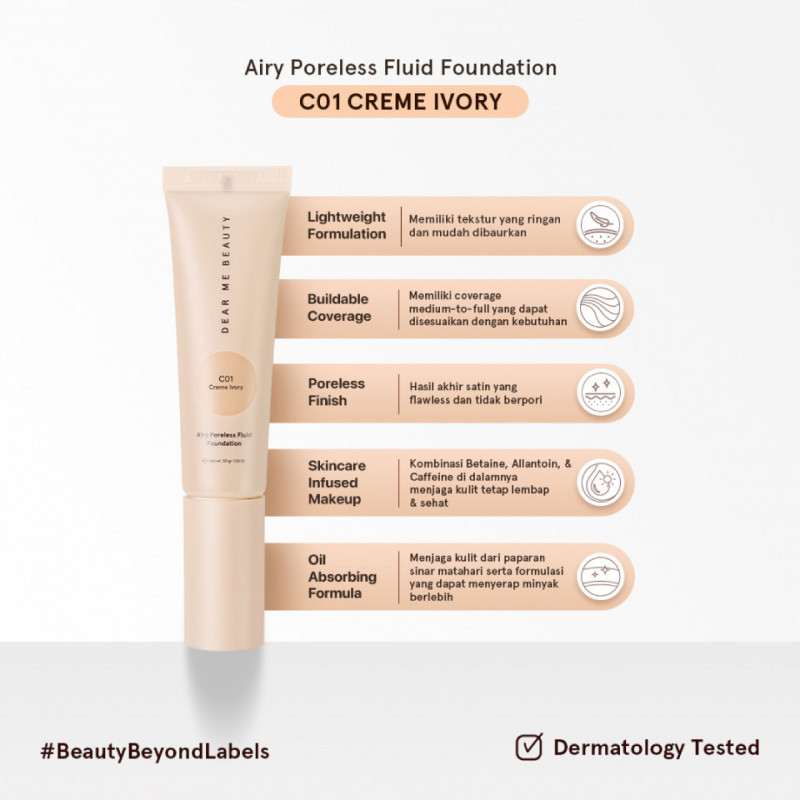 airy poreless fluid foundationnya dear me beauty bagus banget flawless gak dempul gitu