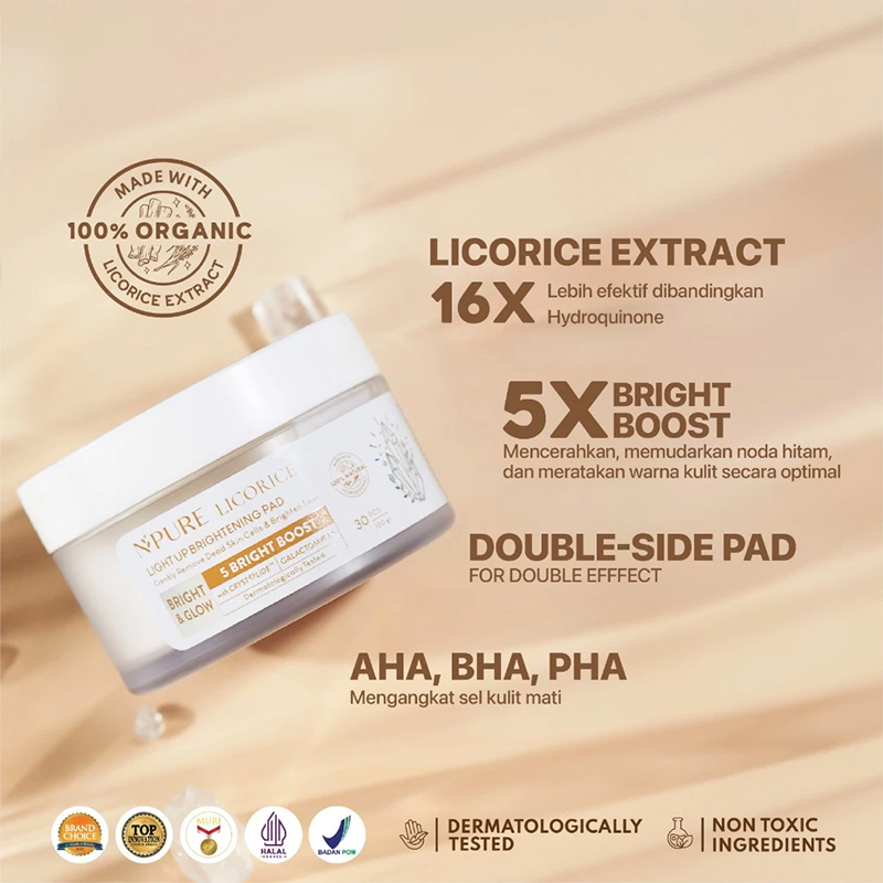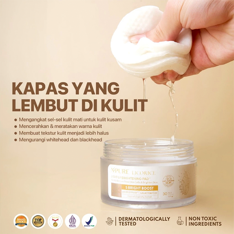 Kapas eksfoliasi bertekstur yang membantu mengangkat sel kulit mati secara lembut. Diperkaya dengan AHA, BHA, PHA, dan menghaluskan, dan membuat kulit tampak cerah bersinar. Temukan kulit cerah bersinarmu dengan menggunakan series Licorice lainnya.