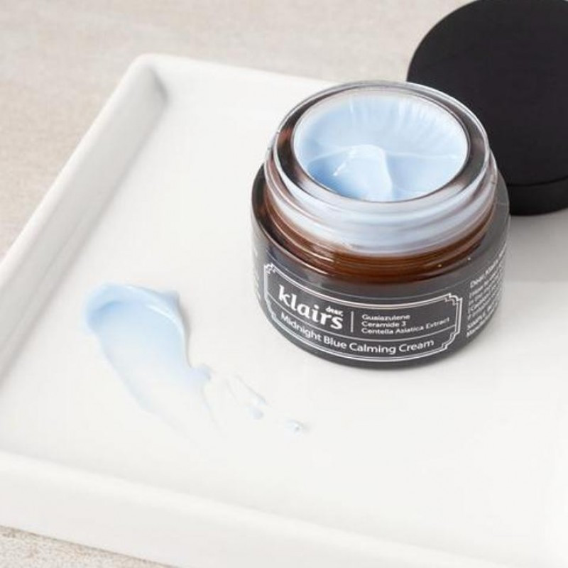 Midnight Blue Calming Cream adalah krim lembut yang kaya akan azulene, dirancang untuk membantu menenangkan dan meredakan sensitivitas kulit dengan cepat dan memiliki tekstur lembut berwarna biru.