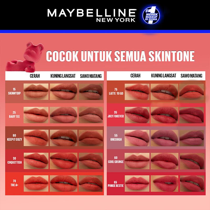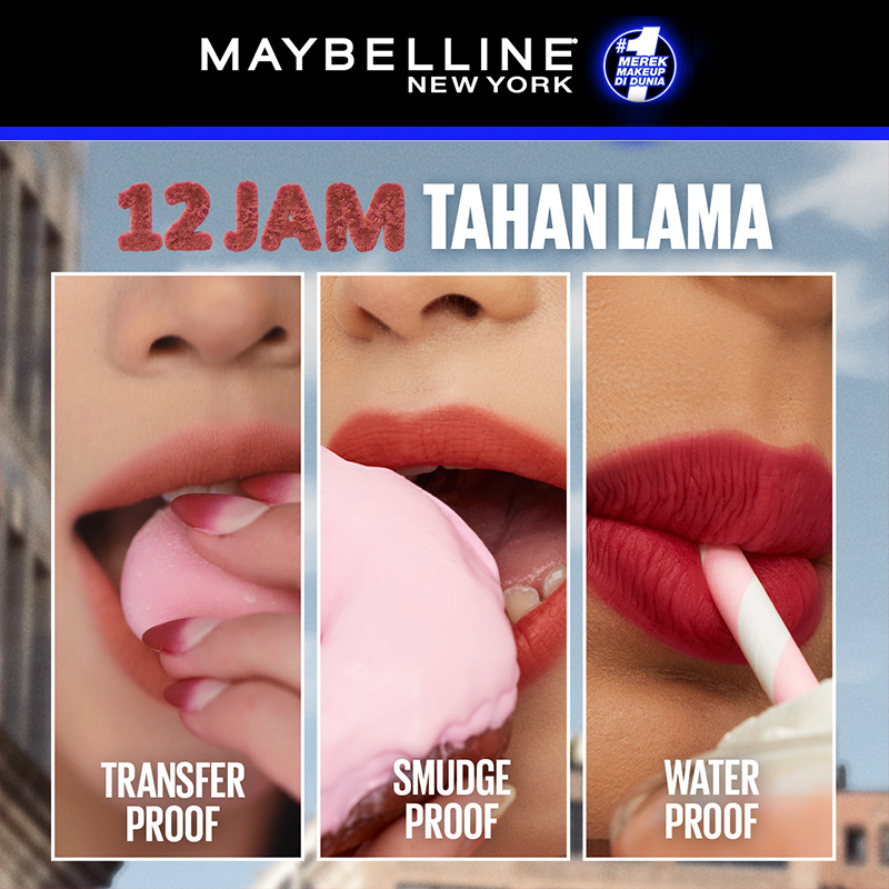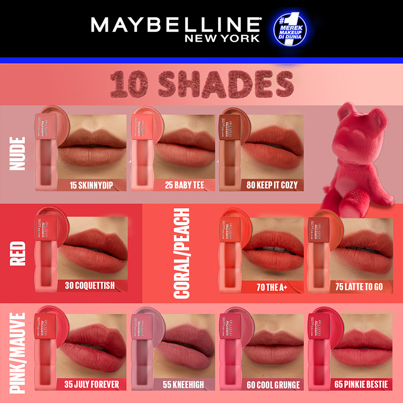 Teddy. Set. Go. BARU Superstay Teddy Tint : Teddy-Soft Matte Lip yang No Transfer, Tahan hingga 12 Jam*, Hasil fluffy ringan di bibir dan tidak lengket.