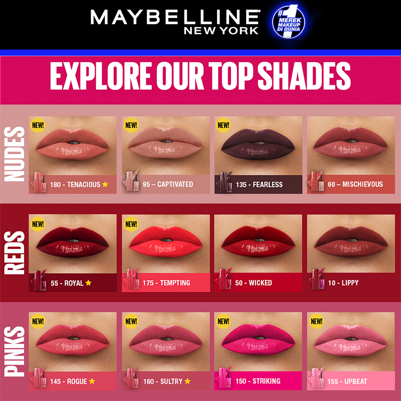 Tint kini dalam teknologi Superstay Lip paling transferproof & tahan lama dengan Vinyl Finish