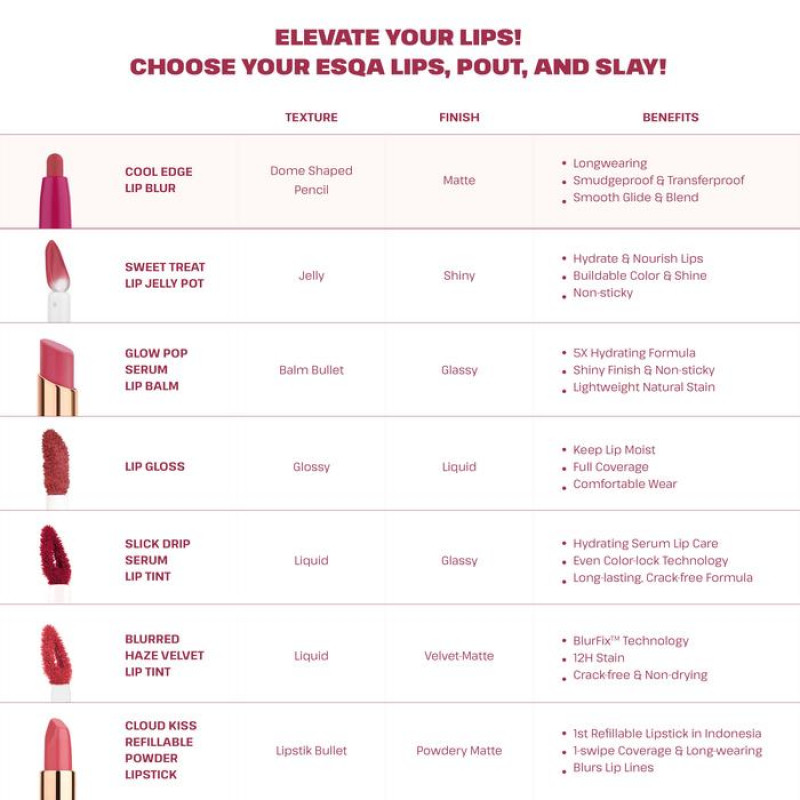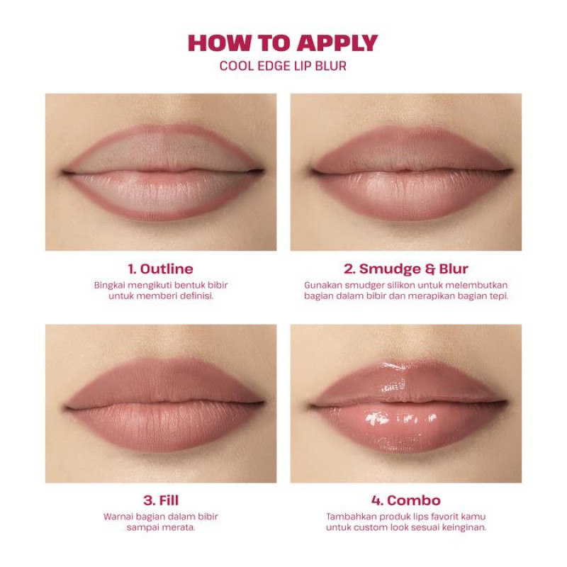 How to use: 1. LINE Trace your natural lip line to shape and define. 2. FILL Glide inwards to fill the inner lips 2. SMUDGE Use the built-in silicone tip to soften edges and clean up lines