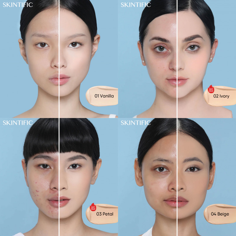 Diresapi dengan 5x ceramide, penutup sempurna, tahan lama. SKINTIFIC berkomitmen untuk menyediakan produk perawatan kulit yang canggih dengan menggunakan kombinasi bahan-bahan ilmiah untuk efek kulit yang cepat sehat