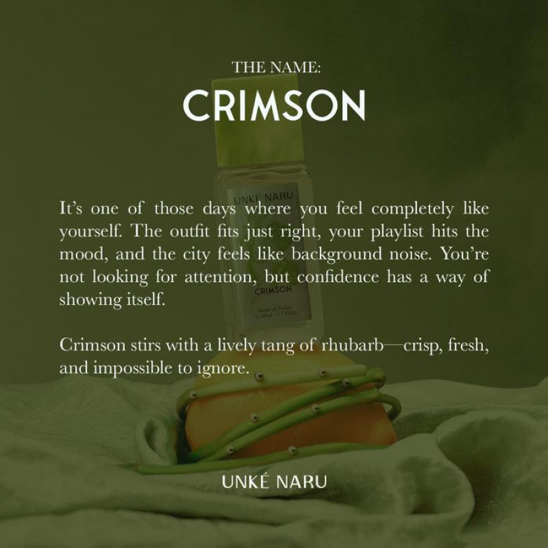 Crimson stirs with a lively tang of rhubarb—crisp, fresh, and impossible to ignore. The joy of being unapologetically you.