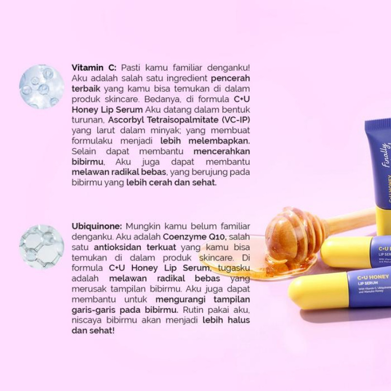 Lip Serum super praktis yang diformulasikan untuk mencerahkan, melembapkan dan mengurangi tampilan bibir yang gelap. Serum untuk bibir ini tinggi antioksidan sehingga permukaan bibir menjadi terhidrasi dan terasa halus. Diperkaya dengan bahan alami Vitamin C, Ubiquinone, and Manuka Honey. Dapat digunakan mulai dari usia 14 tahun, aman untuk ibu hamil dan menyusui. Gunakan secara rutin setiap pagi dan malam hari.