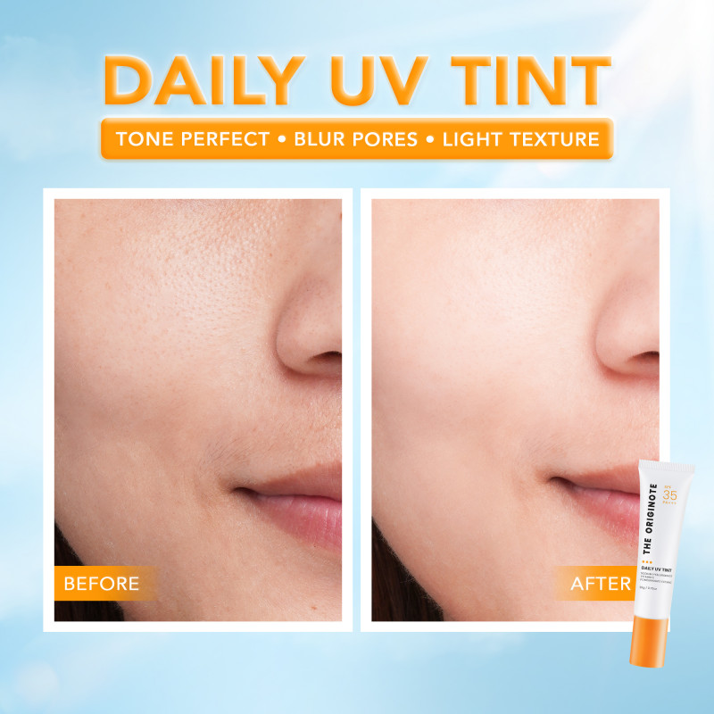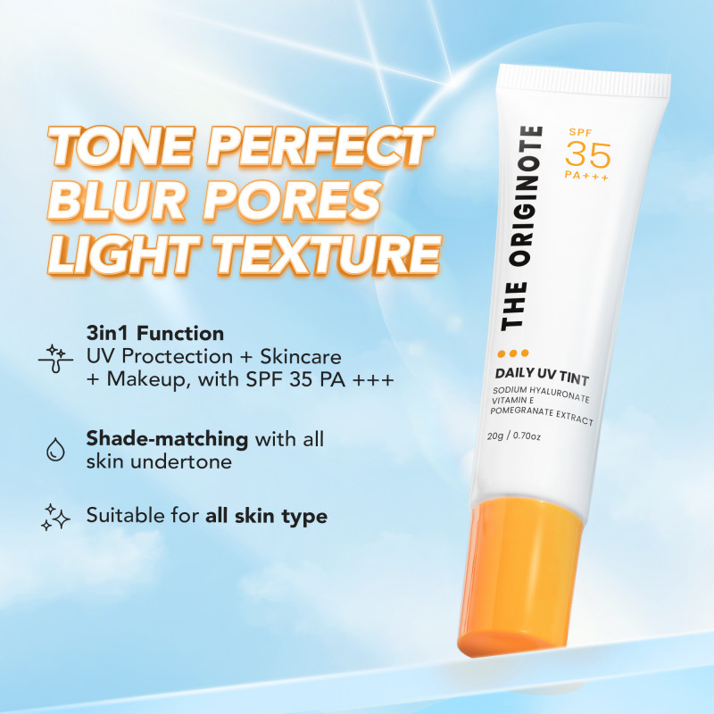 3-in-1: Tabir surya (SPF 35 PA+++) + perawatan kulit + makeup dasar