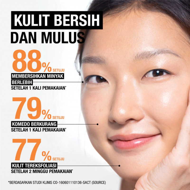 - Scrub ini memiliki formula BHA Blackhead Fighting Complex yang mampu menembus ke dalam pori untuk membersihkan kotoran dan minyak yang terperangkap di dalamnya