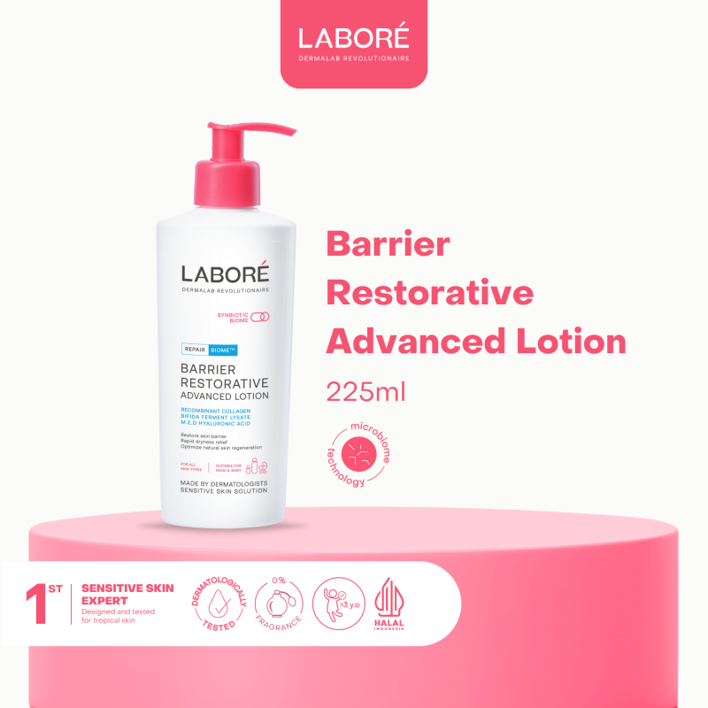 LABORÉ Dermalab Revolutionaire Barrier Restorative Advanced Lotion hadir sebagai body lotion pertama dari LABORÉ yang dirancang sebagai lotion advanced untuk berbagai permasalahan yang nyata terjadi pada kulit tubuh dengan memperbaiki skin barrier dan mempercepat regenerasi kulit, Lotion ini dapat menghidrasi secara mendalam, memperkuat skin barrier, serta meningkatkan kehalusan kulit secara instan, sehingga kulit tampak lebih sehat, halus, dan cerah.
