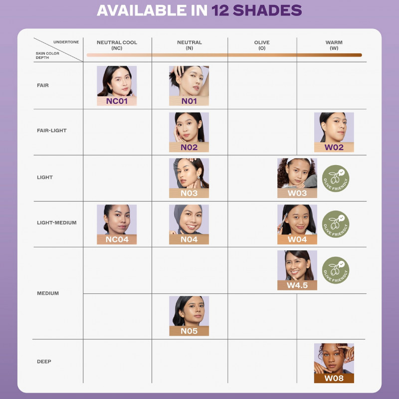 Menutupi ketidaksempurnaan pada kulit wajah dengan tampilan kulit matte lembut yang segar sepanjang hari