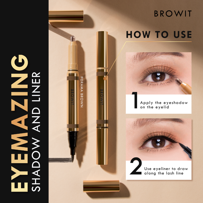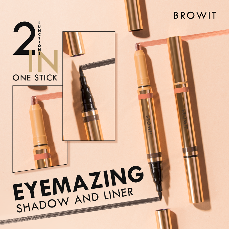 BROWIT EYEMAZING SHADOW AND LINER, Stik 2 in 1 yang memadukan cream eyeshadow dan eyeliner untuk tampilan mata yang indah. Dapatkan kelopak mata yang tajam dan tegas hanya dengan satu sentuhan.