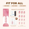 • 24–30 pcs Stay-On Nails — Tersedia dalam 12 ukuran, dirancang untuk kuku terkecil hingga terbesar, jadi tidak perlu memilih size.