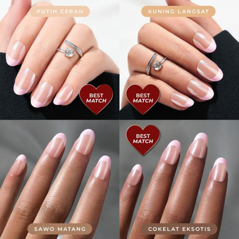 AKURASI WARNA: Perbedaan foto warna kuku dengan warna asli dapat terjadi karena pengaturan layar monitor perangkat yang berbeda-beda.