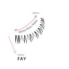 Bubuhkan sedikit perekat (lem bulu mata palsu) pada bagian pangkal bulu mata palsu. Rekatkan bulu mata palsu di bawah bulu mata asli. Rekatkan perlahan dari bagian luar ke bagian dalam garis mata. Untuk melepasnya, lepaskan perlahan dari bagian luar ke bagian dalam garis mata.