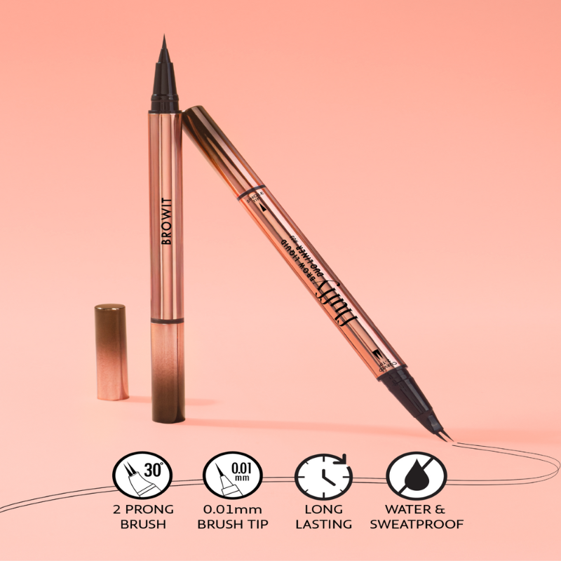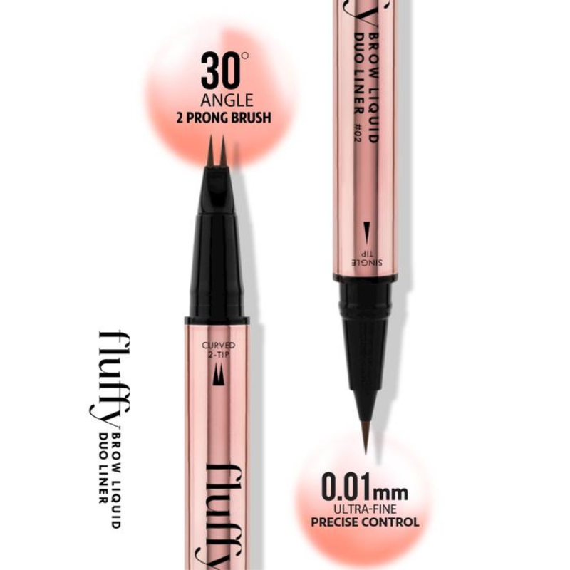 BROWIT Fluffy Brow Liquid Duo Liner, Ciptakan alis dan mata yang sempurna dengan eyeliner cair dua sisi. Ujungnya yang bercabang dua, dengan lengkungan 30 derajat, memungkinkan terciptanya lengkungan alis yang lembut dan alami serta garis bulu mata bawah yang presisi. Sisi kuas tunggalnya, dengan ujung ultra-tipis hanya 0,01 mm, memberikan definisi sempurna, memungkinkan Anda membentuk alis yang tajam dan tegas atau mengaplikasikan eyeliner secara profesional pada kelopak mata untuk tampilan profesional dan berdimensi. Diperkaya dengan Keratin dan Vitamin E, eyeliner ini juga menutrisi alis Anda, menjadikannya sehat dan terawat.