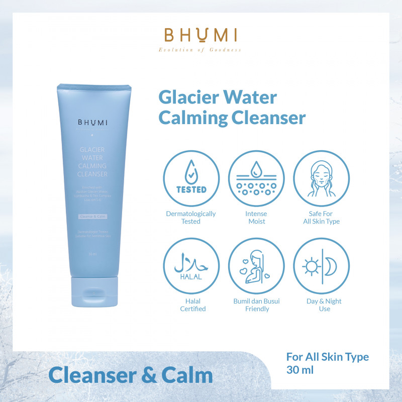 Terinspirasi dari sejuknya danau Eklutna di Alaska, Bhumi menghadirkan pembersih wajah yang lembut dan menenangkan kulit kemerahan akibat iritasi, terlebih jika digunakan dengan rangkaian produk sensitif lainnya. Kemurnian Alaska Glacier Water yang kaya akan mineral membersihkan sekaligus melembapkan kulit secara maksimal. Cleanser ini diperkaya dengan 7 teh dari daun teh, bunga Krisan, ekstrak Thyme, Lemon, Rooibos, Jasmine, dan Rosemary yang baik untuk kesehatan kulit. Tambahan air bunga Camelia dapat menyegarkan wajah. Rasakan sensasi wajah terasa lebih sehat dan lembut menyeluruh.