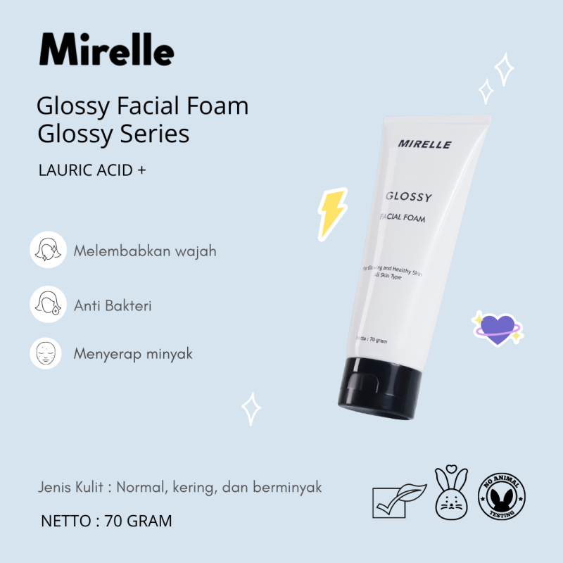 Mirelle Glossy Facial Foam merupakan sabun pembersih wajah dengan bentuk busa yang tidak menimbulkan efek kering pada kulit. Dapat menjaga kelembaban dan membantu mencerahkan kulit wajah.