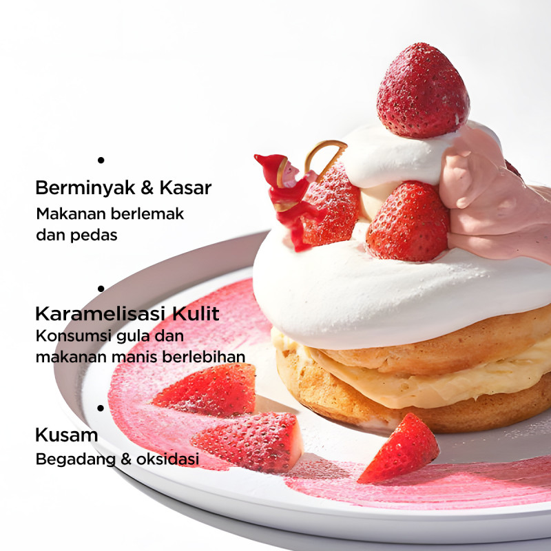 -Membantu mengurangi kusam, kulit kekuningan, dan warna kulit tidak merata, menjadikan kulit tampak cerah bercahaya seperti kaca
