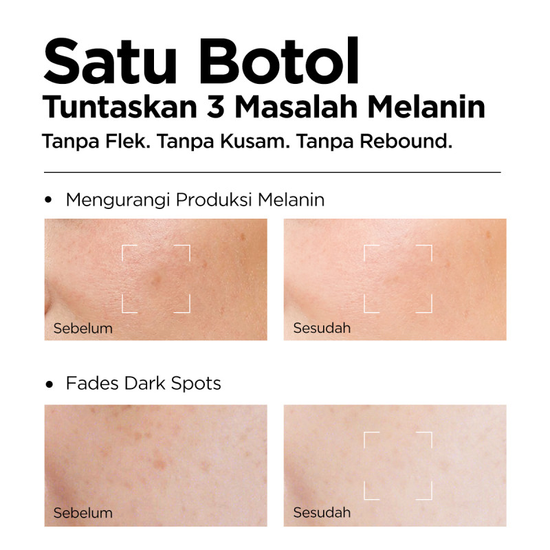 Mencerahkan dari akar, menghambat aktivitas a-MSH untuk mengurangi produksi melanin, mempercepat efektivitas mencerahkan