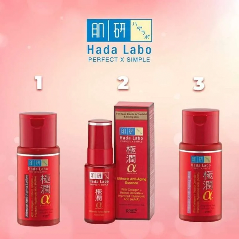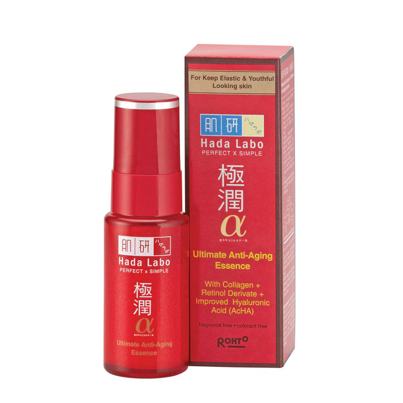 Hada Labo Gokyujun a Ultimate Anti Aging Essence (30gr), serum anti aging, meregenerasi kulit dan masuk ke kulit hingga ke lapisan epidermis kulit terdalam, untuk mengelastisitaskan dan mengencangan kulit. Selain itu, membantu memudarkan garis-garis halus dan kerutan, sehingga kulit tampak muda, halus dan bercahaya.