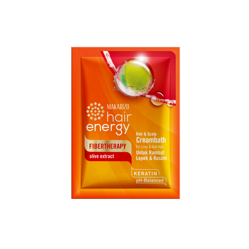 • Makarizo Hair Energy Fibertherapy Hair & Scalp Creambath hadir dengan kombinasi Omega 6 dari Minyak Nabati Passiflora dan Olive Extract dengan kandungan alami Vitamin A & E, sehingga dapat membantu menjaga lapisan keratin serta menguncikelembapan rambut dan mengurangi kelepekan pada rambut, rambut akan lebih bersinar, lembut, dan bervolume!