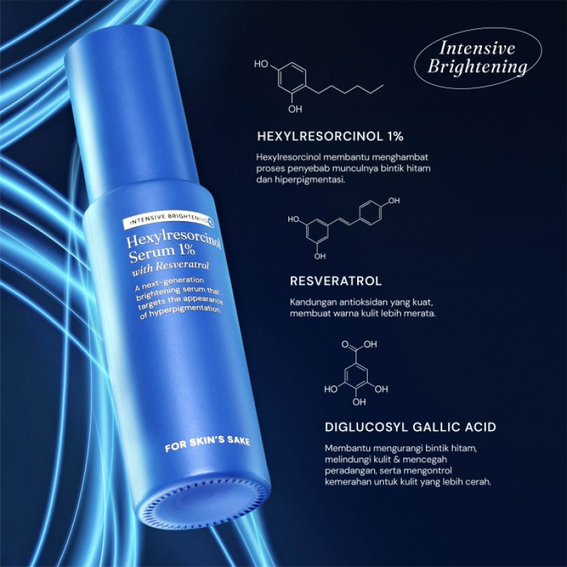 FSS Hexylresorcinol Serum adalah solusi perawatan kulit yang diformulasikan untuk mencerahkan kulit wajah, meratakan warna kulit, dan mengurangi noda gelap (dark spots). Serum ini mengandung 1% Hexylresorcinol, bahan aktif yang terkenal dengan 4x lebih cepat efektivitasnya dalam mengatasi hiperpigmentasi dan meningkatkan kecerahan kulit. Dikombinasikan dengan Resveratrol, antioksidan kuat, serum ini juga membantu melindungi kulit dari radikal bebas dan tanda-tanda penuaan dini.