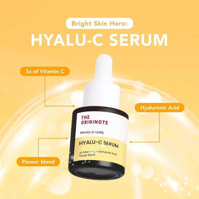 Serum yang di formulasikan dengan 3 jenis vitamin C, 5 jenis Hyaluronic Acid dan Flower Blend (Daisy, Marigold dan Sunflower) yang berfungsi sebagai antioksidan dan mencerahkan kulit yang kusam. Menjaga kelembapan wajah serta merawat keremajaan kulit.