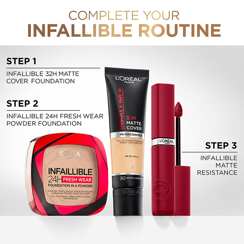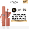 Infallible Matte Resistance 16H Liquid Lipstick memberikan fisnih matte Tersedia dalam 13 Shades yang cocok untuk setiap warna kulit, yang terdiri atas Nude, Pink, Red, dan Plum.
