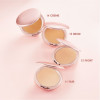 Aplikasikan dan ratakan produk pada wajah dengan dual-sided applicator. Sisi sponge untuk hasil yang lebih cover, sisi velvety flock (berbulu) untuk hasil lebih natural atau sebagai finishing powder