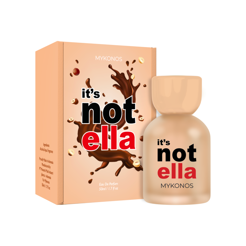 Mykonos It's Not Ella adalah parfum pria dan wanita dengan nuansa gourmand. Parfum ini terdiri dari Hazelnut, Chocolate,Creamy, Praline, Vanilla, Amber, Vanilla, Cedar