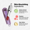 Shea Butter : Memberikan efek menenangkan, meregenerasi, dan membentuk lapisan pelindung yang unik untuk kulit, membangun kembali pelindung kulit bibir dan mengembalikan kilau alami bibir.