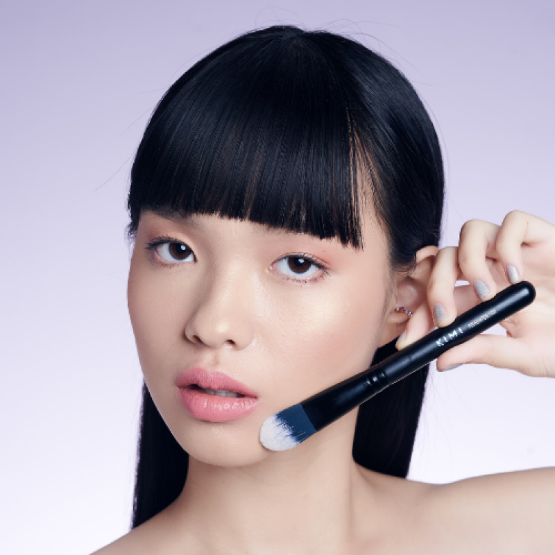 How to Use: dip the flat side of the brush into product and apply to face with stokes.