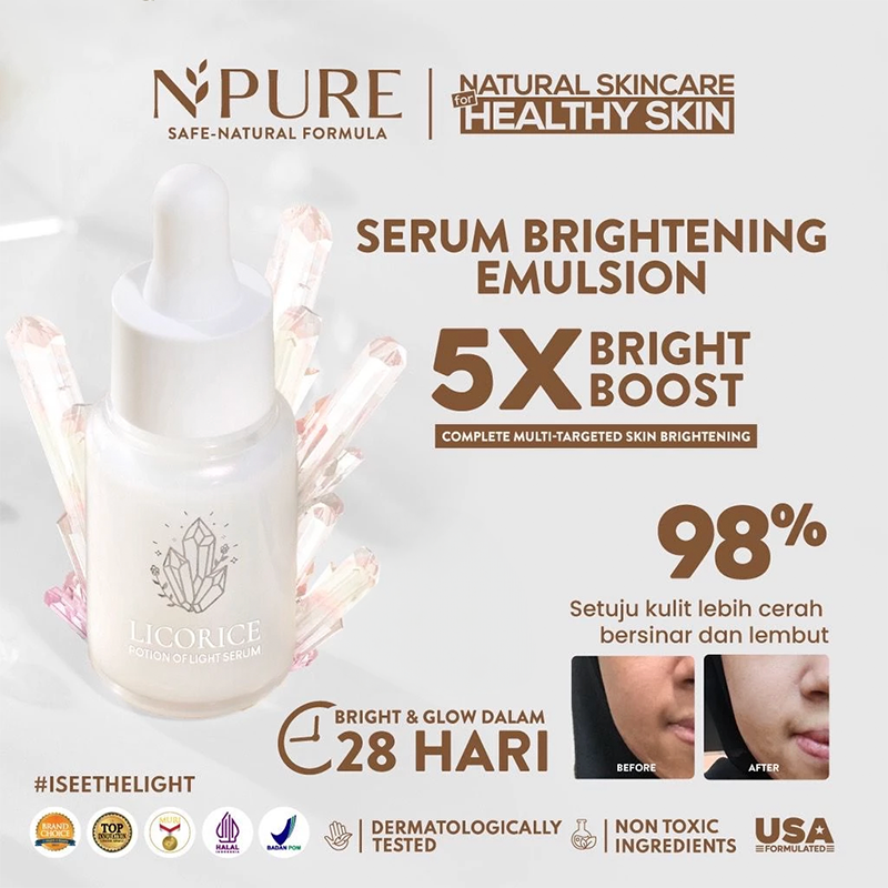 Brightening serum dengan kombinasi sempurna Hexylresorcinol dan 5X Bright Boost. Membantu mencerahkan, memudarkan tampilan noda hitam, merawat skin barrier, dan mengurangi tampilan minyak dikulit. Kulit tampak cerah bersinar dan terasa lebih kenyal.