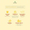 Tropical Fruits Extract, Golden Kiwi Extract, Turmeric Extract, Apricot Extract, Psyllium Husk, Lemon Extract, Passion Fruit Extract, Brussel Sprout Powder, Okra Powder, Lentil Powder, Inulin, Lactobacillus Acidophilus, Lactobacillus paracasei, Bifidobacteriun Lactis, Vitamin D3, Vitamin E, Zinc, Vitamin and Mineral Premix.