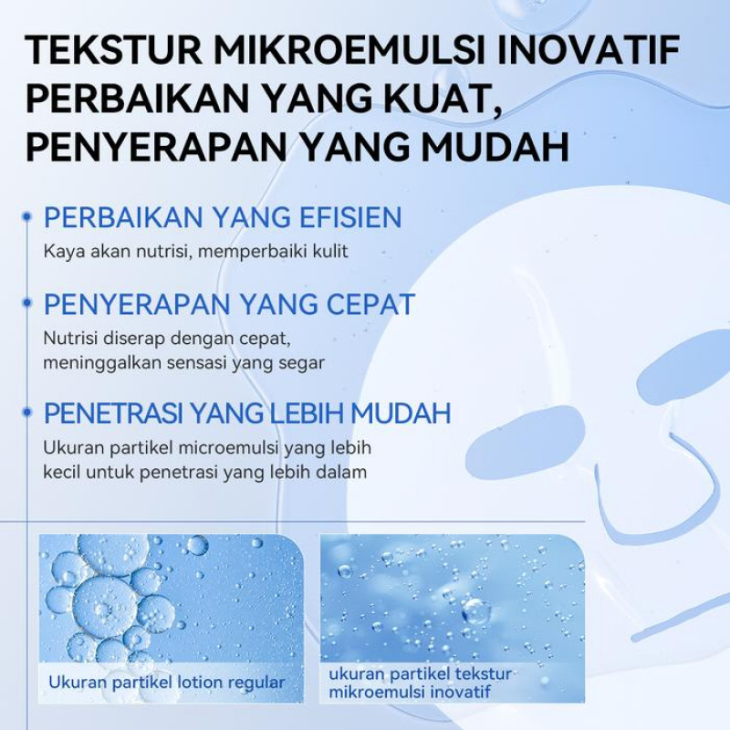 Diformulasikan dengan Vitamin B5 (Panthenol), masker ini membantu menenangkan kulit sensitif dan iritasi, memberikan kelembapan mendalam, serta memperbaiki skin barrier. Ideal untuk kulit kering, kemerahan, atau setelah terpapar sinar matahari.