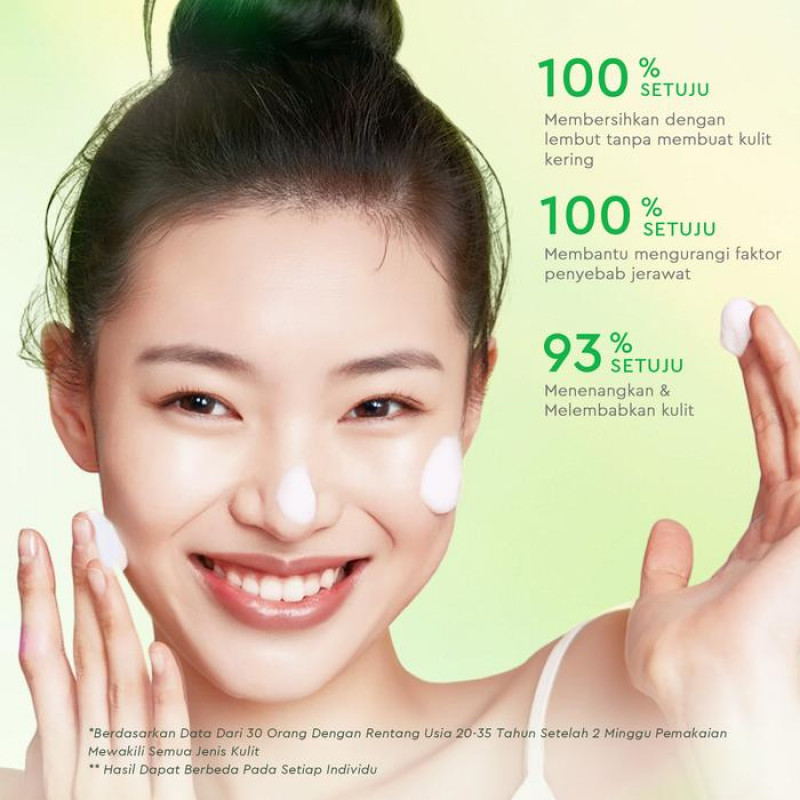 pembersih wajah dengan kandungan ekstrak daun teh hijau (matcha) dan salicylic acid yang membantu membersihkan minyak berlebih, mengangkat kotoran, serta merawat kulit berjerawat. Formula lembutnya membersihkan tanpa membuat kulit terasa kering, meninggalkan sensasi segar dan kulit terasa lebih bersih.