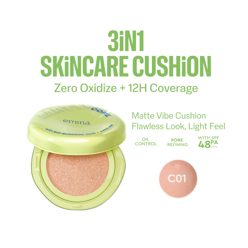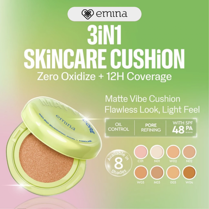 Emina Matte Core Cushion memberikan hasil akhir matte yang halus dan natural tanpa kesan