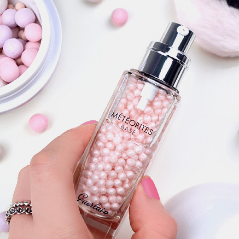 Météorites Primer smooths and color-corrects your skin tone for a radiant complexion. Infused with a delicate violet scent, it’s formulated with Guerlain’s signature Stardust Technology: a unique complex encapsulating a celestial powder that transforms light invisible to the naked eye into visible and soft-focus perfecting light to blur imperfections and provide exceptional radiance. The fresh gel texture melts with the rosy pearls to give skin a radiant and glowing finish, while neutralizing excess sebum for a long-lasting matte complexion. Highly concentrated pearls containing multi-colored, micro-shimmer particles amplify light reflection to create an illuminating, color-corrective light for your complexion. The absorbent powders neutralize excess oil while a special polymer helps to fade imperfections and smooth fine lines for a long-lasting, matte and even complexion.
