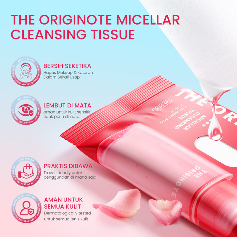 Micellar Cleansing Tissue cocok untuk kamu yang aktif, sering bepergian, atau butuh solusi cepat membersihkan wajah tanpa ribet. Praktis, aman, dan bikin kulit tetap segar sepanjang hari!