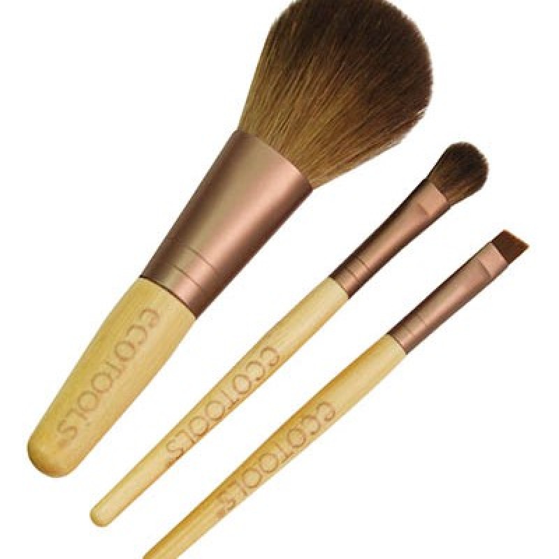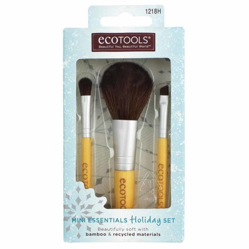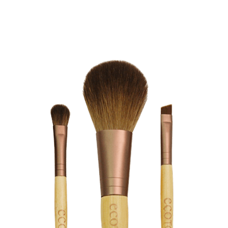 The EcoTools® Mini Essentials Set is your on-the-go necessity. You can easily shade, finish and define with these 3 mini brushes! Start with the full powder brush to create a flawless base with pressed or mineral powder. Use the eye shading brush to apply shadow along eyelid and crease and highlight brow bone. Add final definition with the angled liner brush by using the ultra-flat angled tip to line your eye with cream liner or shadow.