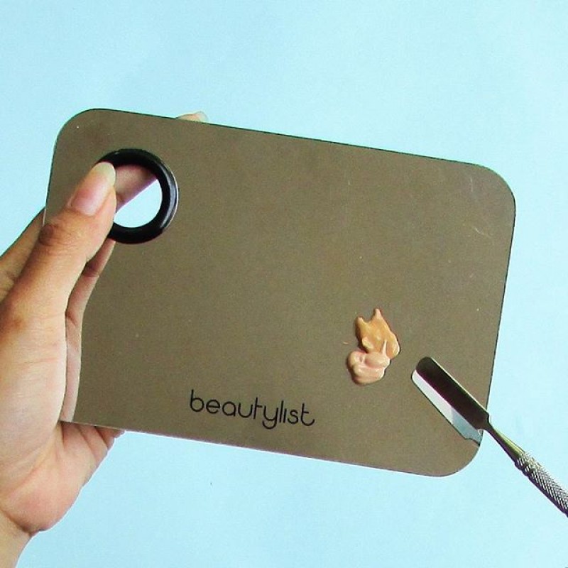 When mixing base and concealer products to create a custom color, this palette and spatula duo scrapes, blends and mixes different consistencies and formulas into a new creation. It also blends together pigments and powder products with ease.