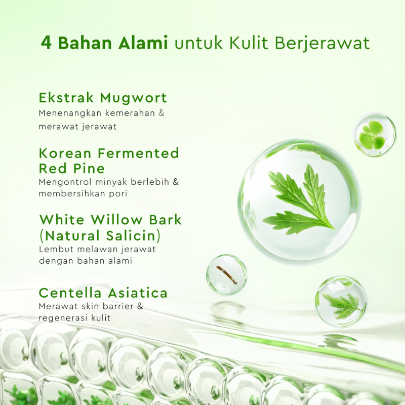 Masker gel dengan ekstrak Mugwort, Centella, dan Green Tea untuk menenangkan, melembapkan, dan meredakan kemerahan. Diperkaya Niacinamide & Sodium Hyaluronate untuk mencerahkan dan menghidrasi kulit, serta probiotik fermentasi untuk memperkuat skin barrier. Cocok untuk semua jenis kulit, termasuk sensitif.