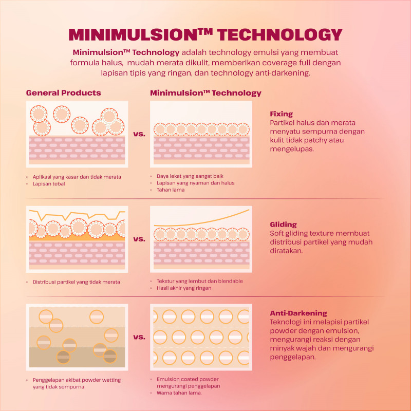 - Dengan aplikator, tekan ringan ke spons cushion. Atur besar tekanan berdasarkan coverage yang diinginkan. - Aplikasikan dengan tepuk secara halus ke wajah, baurkan formula dari tengah ke arah luar wajah. - Tutup kedua tingkat kemasan dengan kuat untuk menjaga formula tetap segar.
