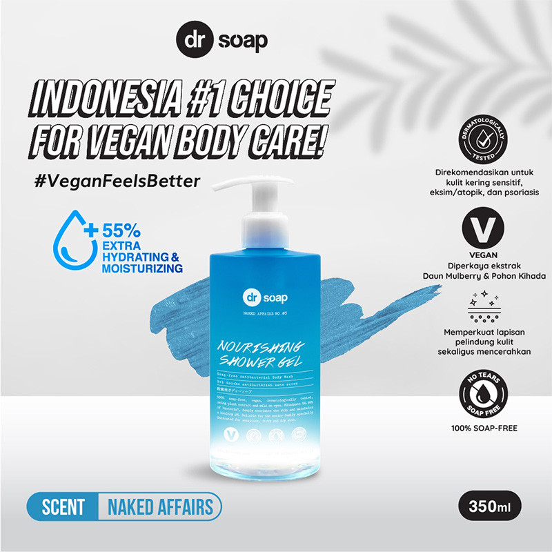 Kulit sensitif yang kering mudah teriritasi oleh faktor yang dipicu dari lingkungan, sehingga membutuhkan pembersih yang lembut untuk mengurangi rasa sensitif pada kulit. Dikembangkan dengan ekstra surfaktan ringan dan ekstrak alami Daun Mulberry & Pohon Kihada yang berasal dari Jepang. dr soap Nourishing Shower Gel dapat menghidrasi, mencerahkan, dan membersihkan kulit dengan lembut, serta sebagai antioksidan & antiinflamasi, mencegah infeksi dan bakteri menempel, juga mengurangi gatal atau kemerahan. Dapatkan kulit lembut, kenyal, bersih, dan sehat yang tak terhindarkan setelah menggunakan dr soap Nourishing Shower Gel!