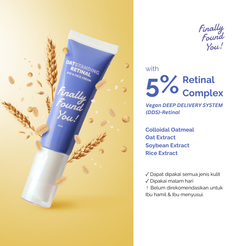 Ambil FINALLY FOUND YOU! OATstanding Retinal Eye & Face Cream pada ujung jari. Ratakan pada kulit area mata sambil ditepuk ringan menggunakan jari hingga produk meresap pada kulit. Gunakan secara rutin tiap malam hari.